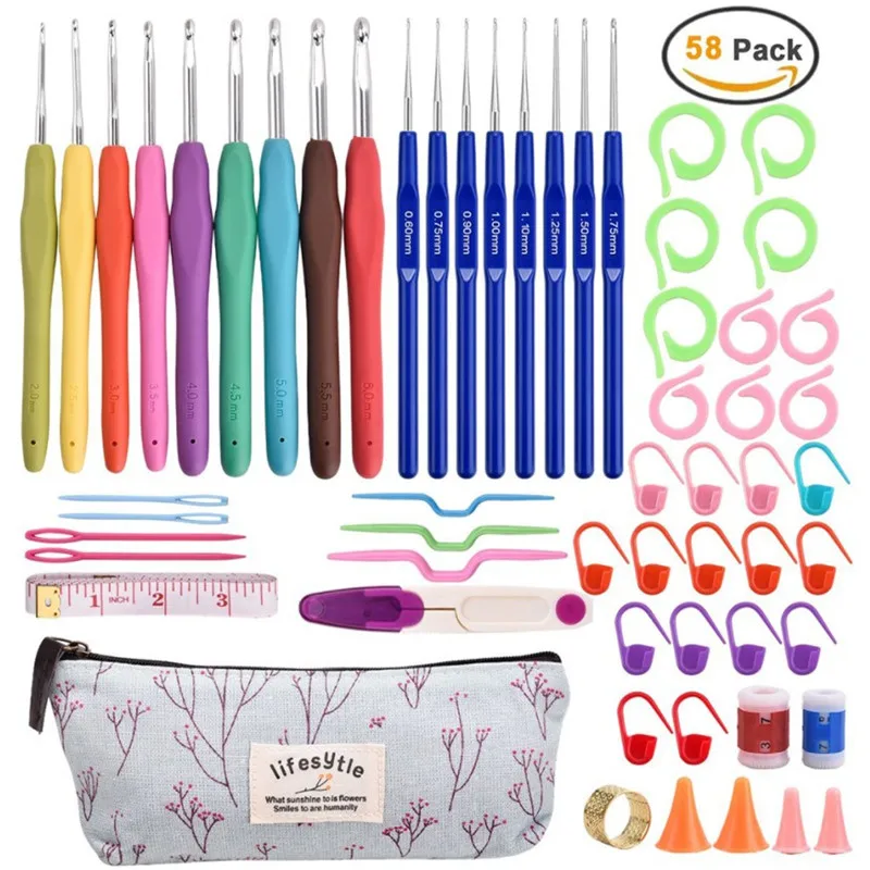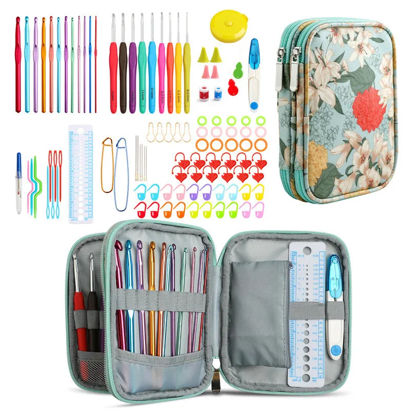 Посылка: Крючки для вязания крючком, тупые иглы, значки, рулетка, кожаная сумка