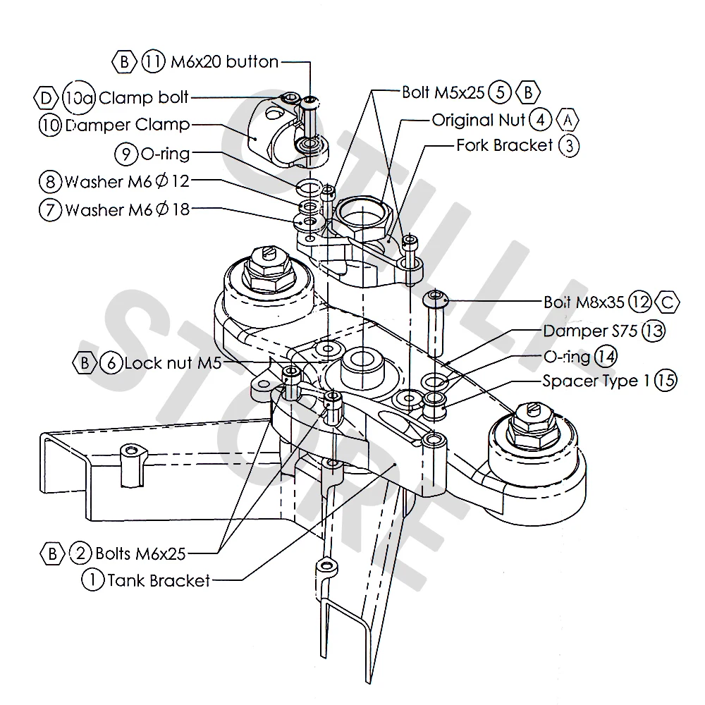 Проверьте, достигнет ли демпфер руля и его комплект мотоцикла или масляного бака. Если они это делают или в помещении не хватает, перемещайте демпфер руля горизонтально в нужное место.