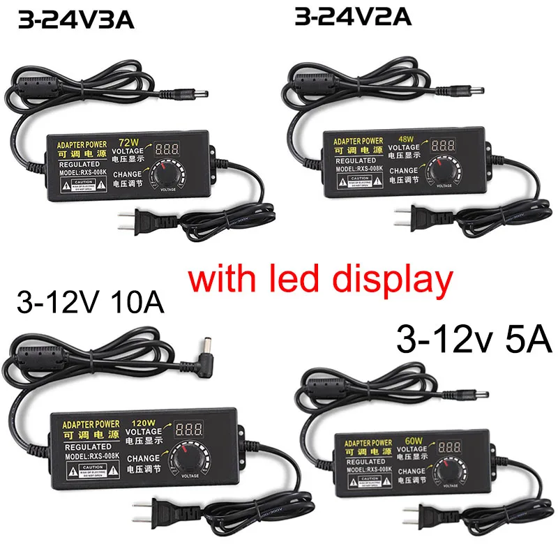 AC to DC Adjustable Power Supply Adapter 3V 24V 9V 12V 15v 18v 1A 2A 3A 5A 10A Volt DC Connector Wall Charger with Led Display