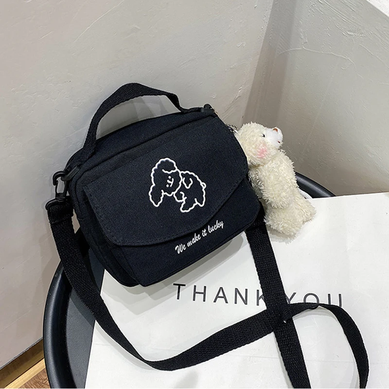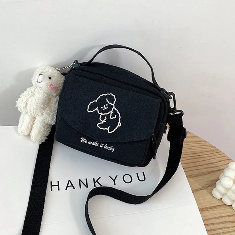 Женская модная холщовая маленькая квадратная сумка Корейская версия многофункциональная милая собака на одно плечо Диагональный мобильный телефон в упаковке