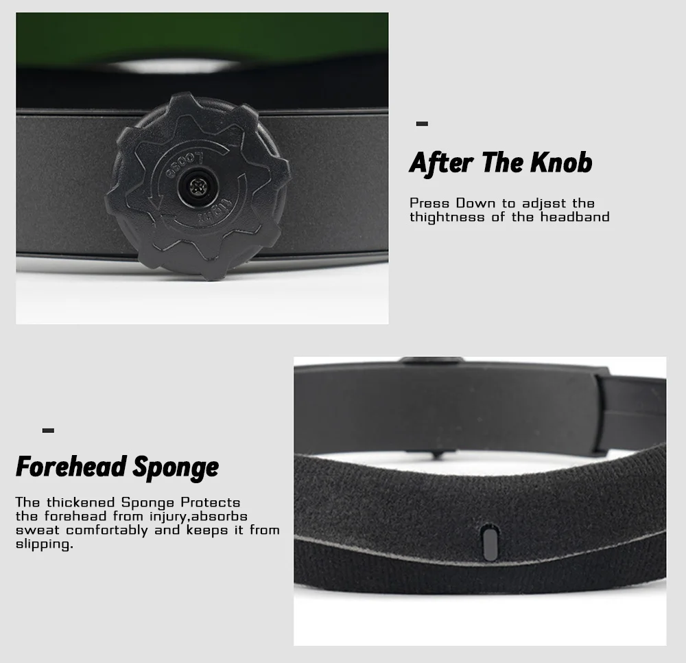 Сварочная маска может быть перевернута вверх и вниз, а герметичность повязки может быть скорректирована во время использования.
