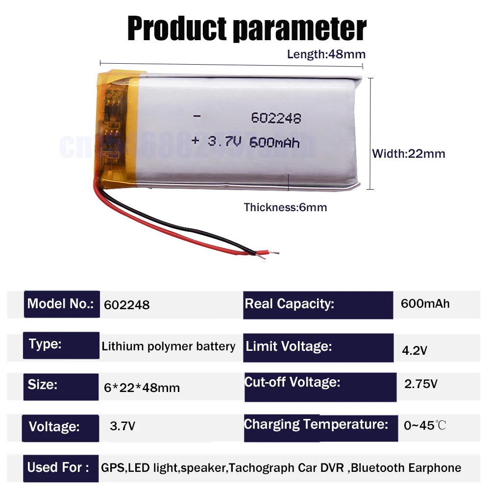 1/2 шт. 3,7 в 600 мАч 602248 062248 литий-полимерный перезарядка литиево-ионная Батарея для DVD GPS трекер Смарт часы Bluetooth наушники