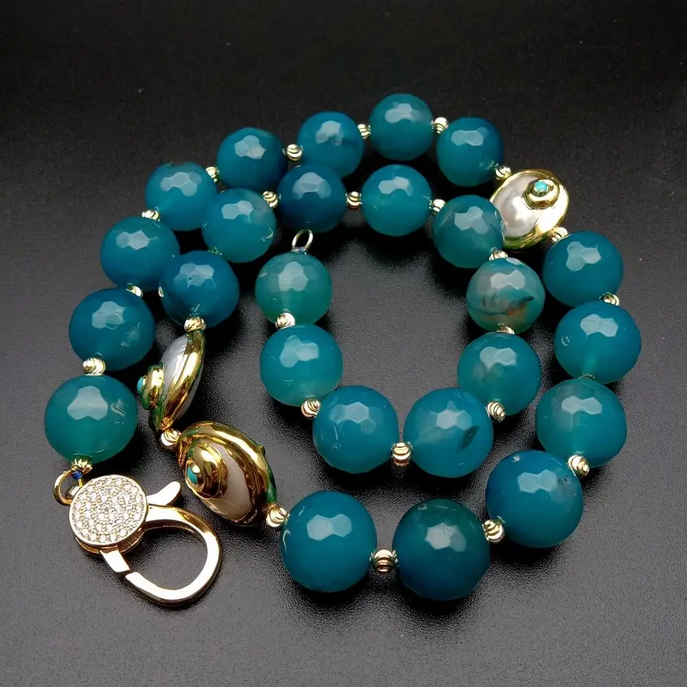 Информация о драгоценных камнями: Пресноводный Культивированный Жемчуг, из белого жемчуга-монетка, синий граненый агат.