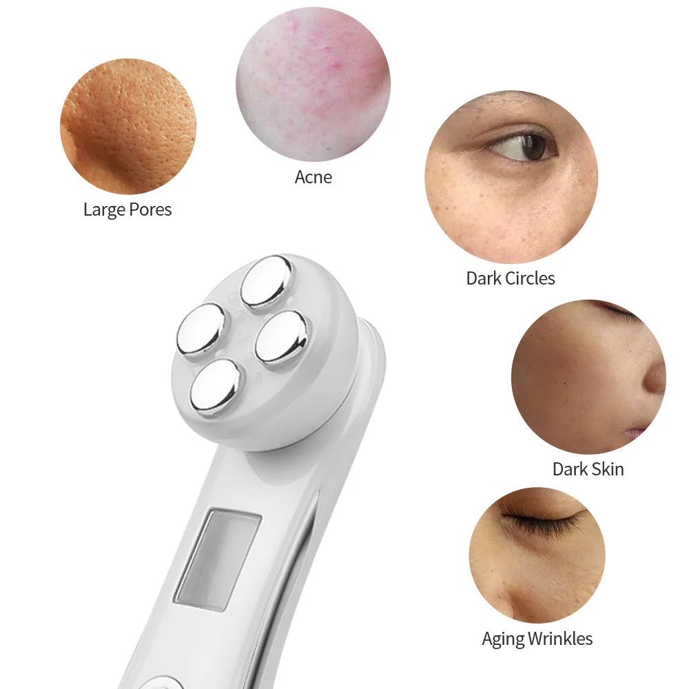 Этот косметический инструмент оснащен EMS током, технологией электропорации, радиочастотой RF и светодиодный, какой он многофункциональный, чтобы он мог решить многие проблемы кожи ems.