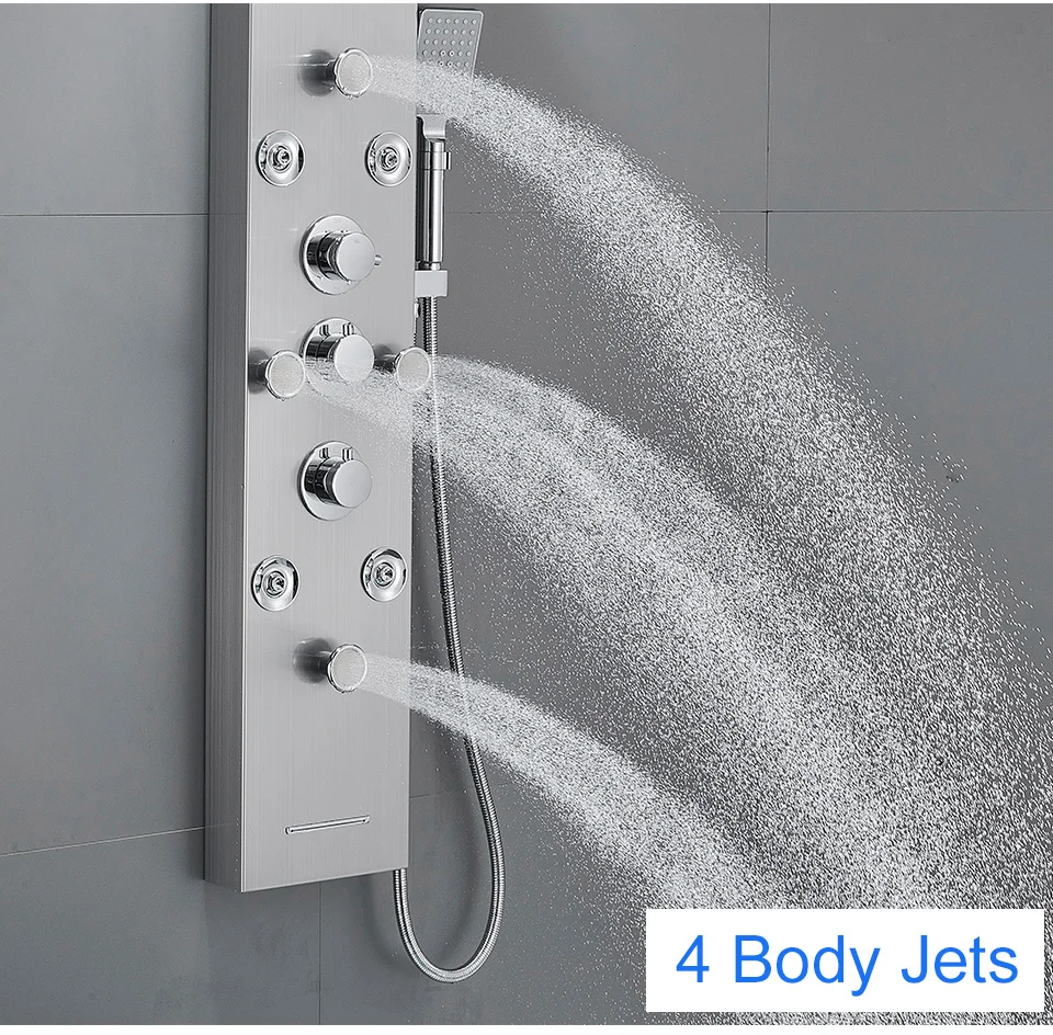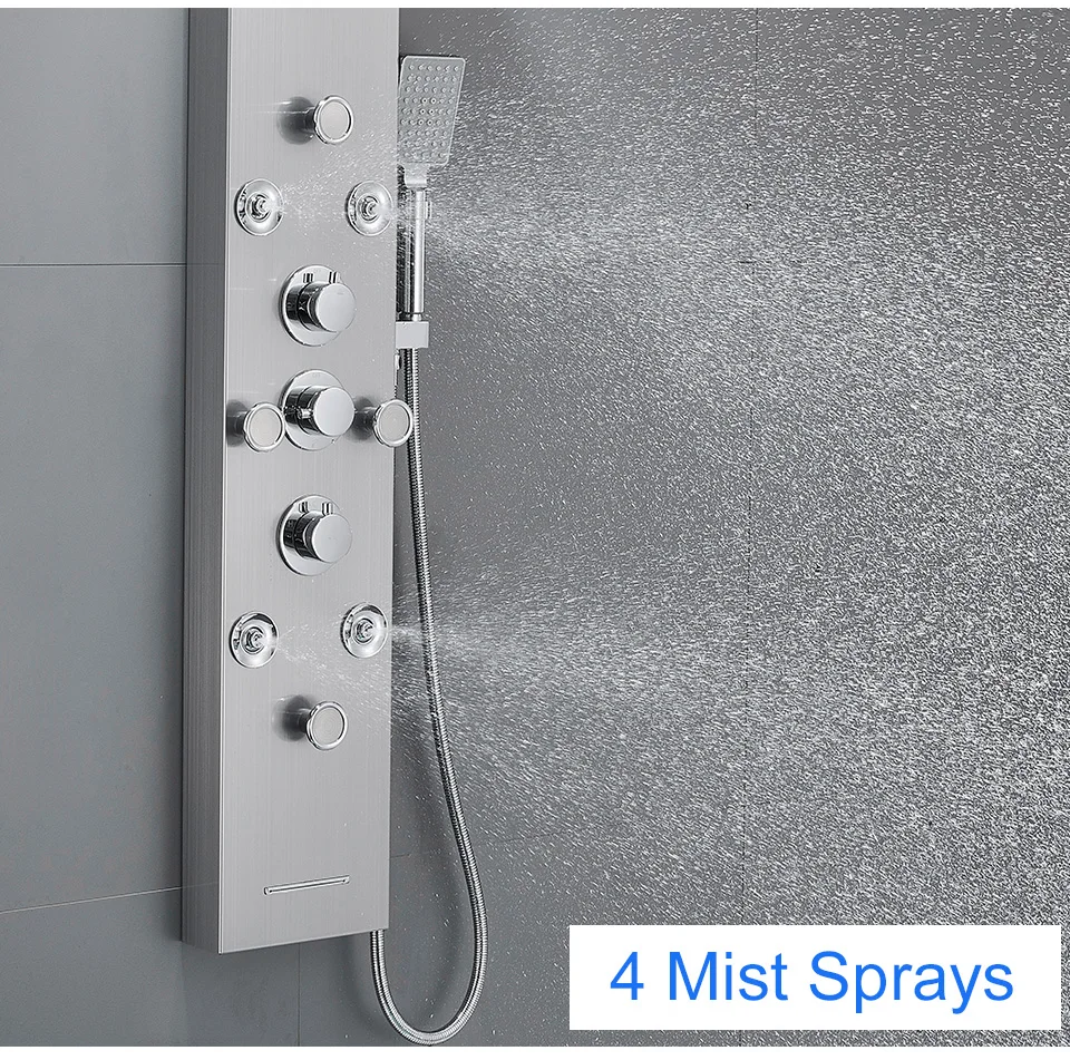 【 Душевая панель 6 в 1 эта душевая башня оснащена насадкой для душа с водопадом, 4 струями, 4 распылителями, 3 встроенными ручными душевыми палочками, носиком с водопадом и дисплеем температуры воды, дополненной душевой колонкой