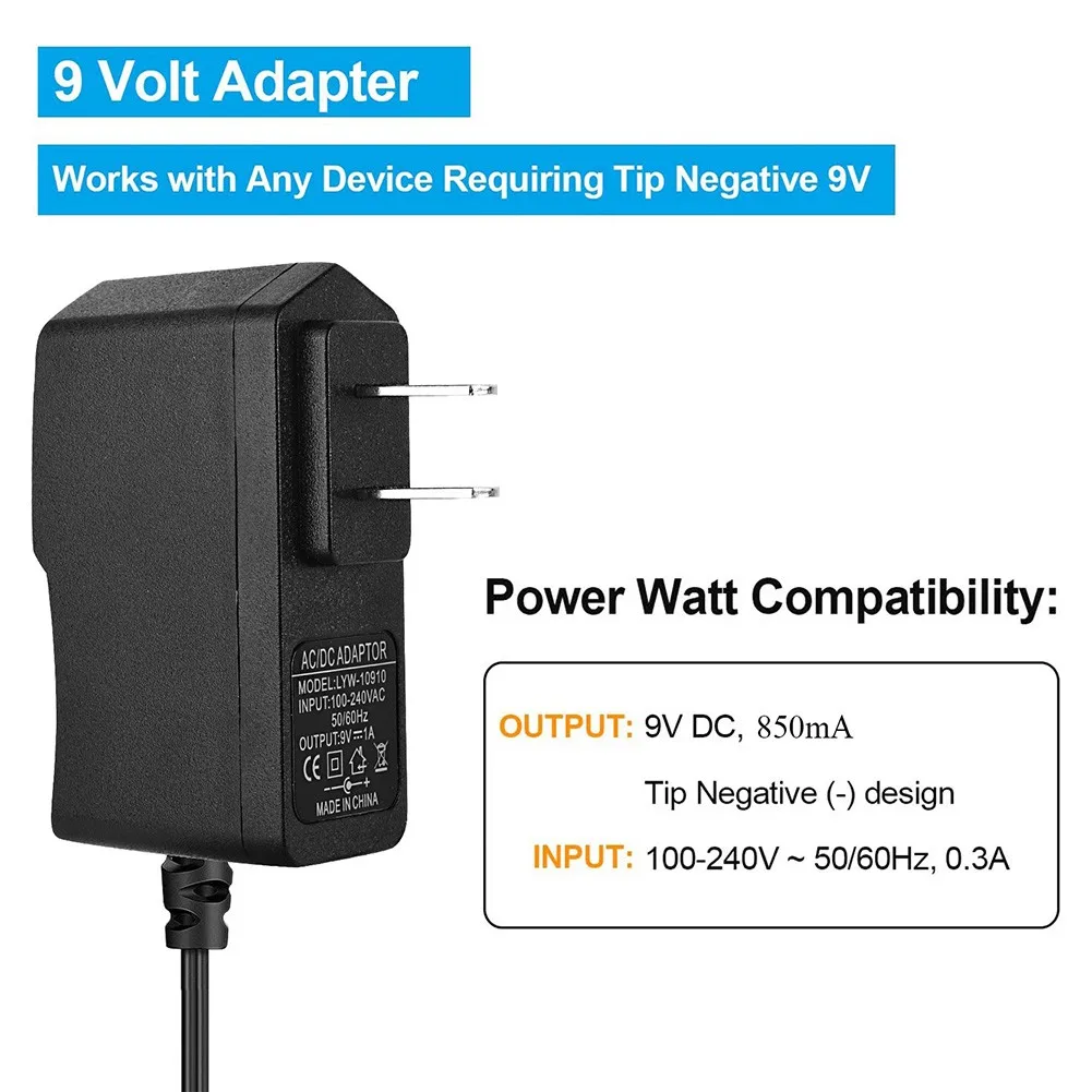 Выход элемент питания: 9V, 850mA