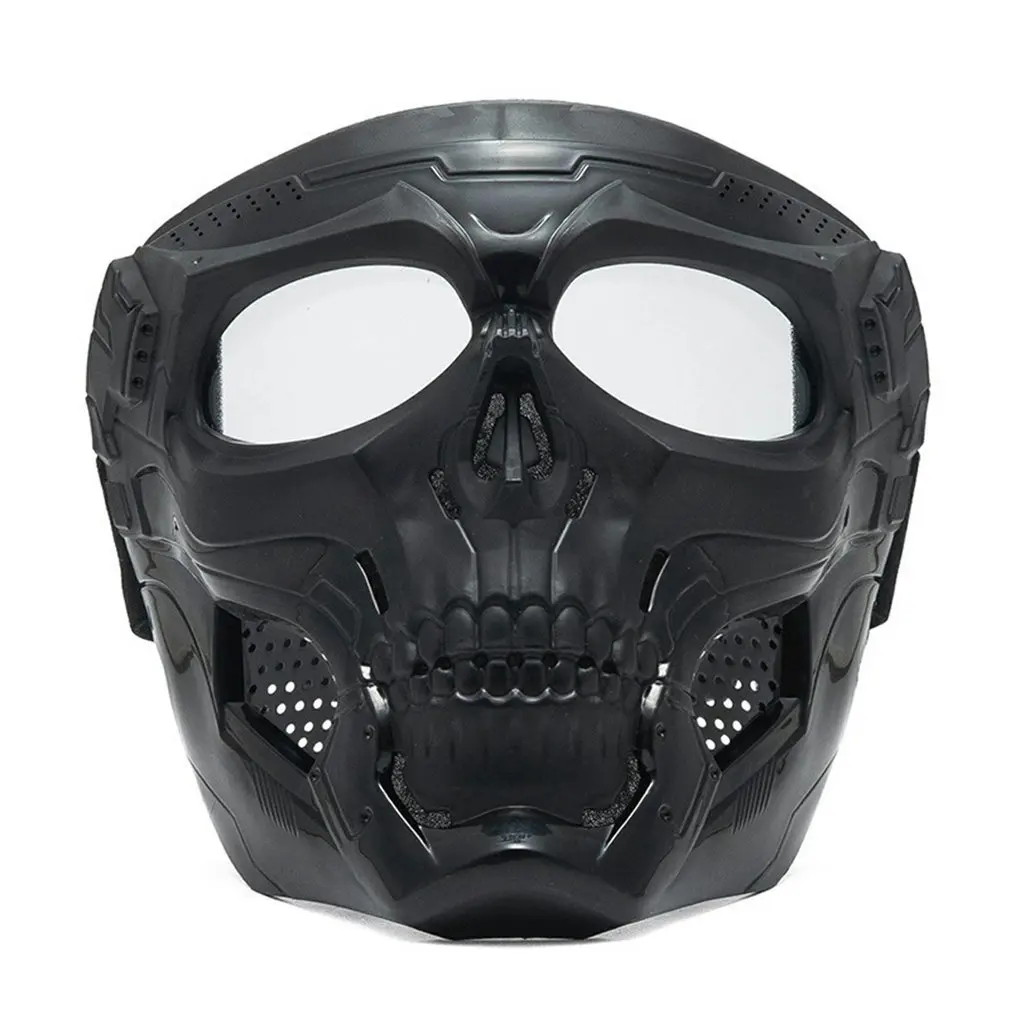 1. Маска с черепом обеспечивает комплексную защиту воздушного оружия и других видов спорта на открытом воздухе. Защитите свое лицо. Прозрачные очки можно спрятать внутри шлема и переключить по желанию.