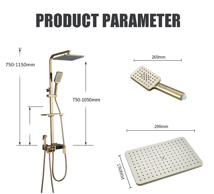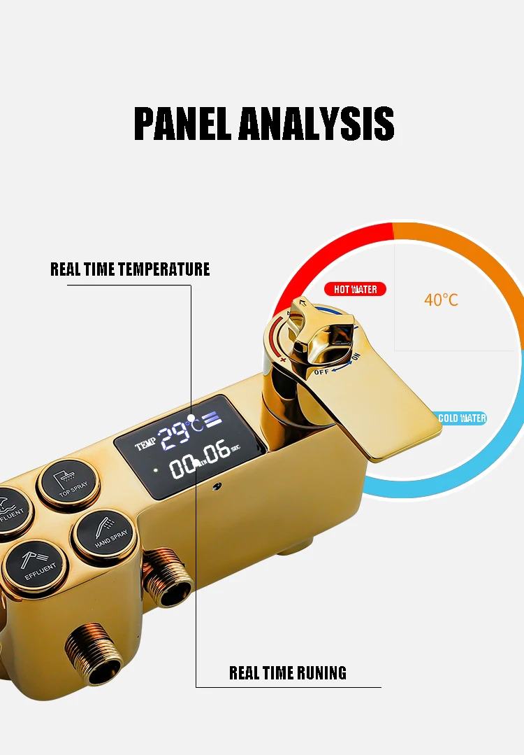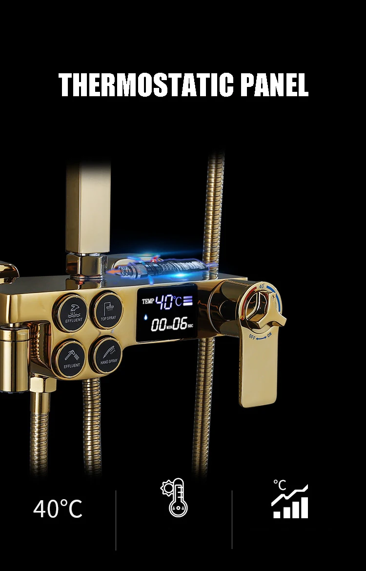 Золотая система для душа, кран, набор, ванная комната, горячая холодная, смеситель, термостатический, цифровой, для ванной, кран, настенный, квадратный, дождевик, душ, Torneiras