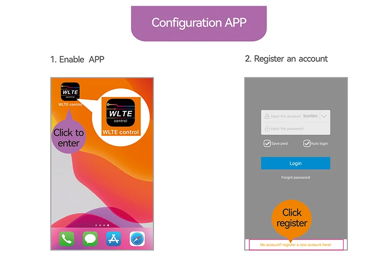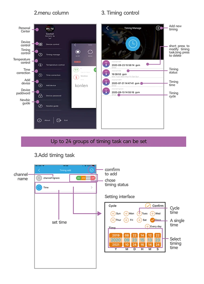 В режиме передачи данных 4G пользователи могут использовать приложение (управление WLTE) или веб-вход для управления гнездом питания KONLEN через Интернет данных 4G. Для некоторых стран пользователи должны установить APN перед использованием для активации сети данных 4G.
