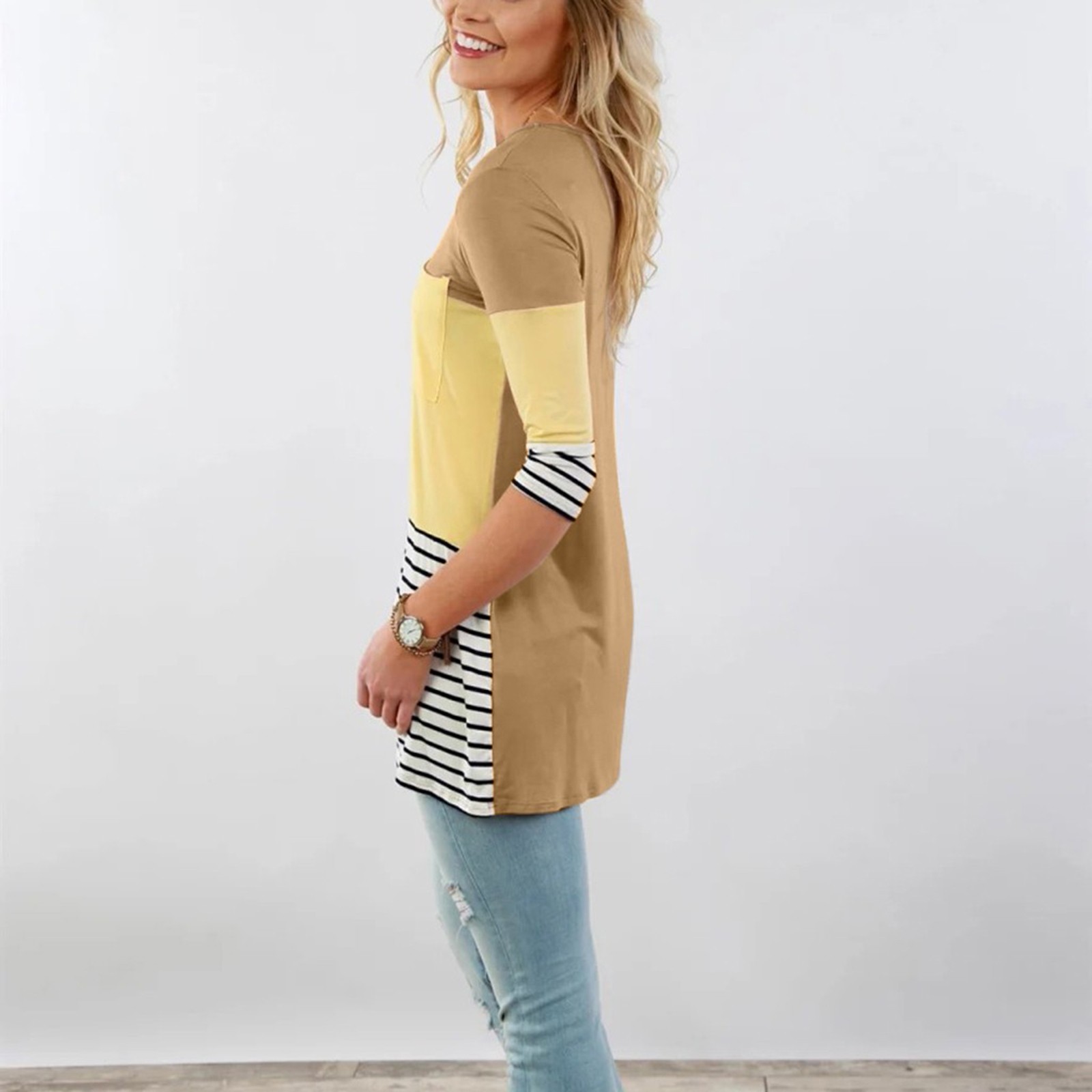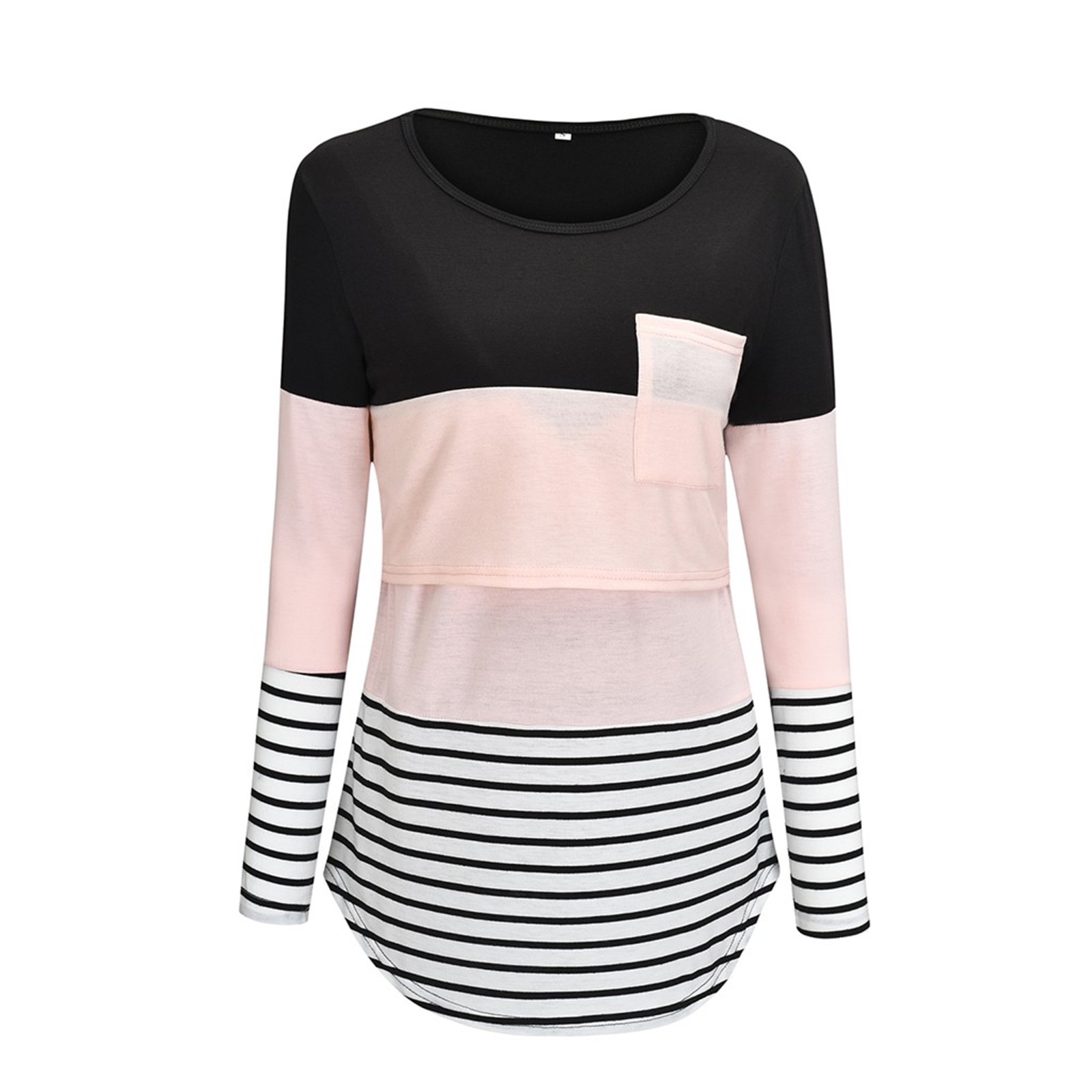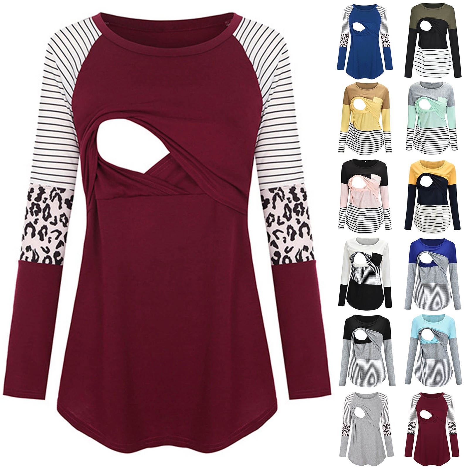 2. Длинный рукав, круглый вырез. В стиле пэчворк, Классический Топ для беременных, Топ для кормящих, с двойными передними слоями.
