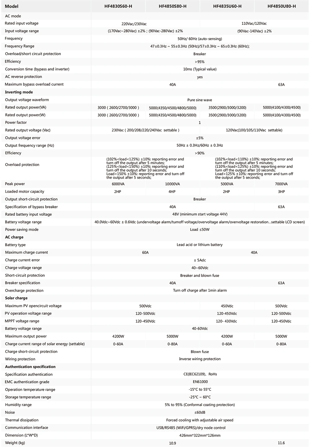 1. Номинальная мощность 5000 Вт, 48В постоянного тока