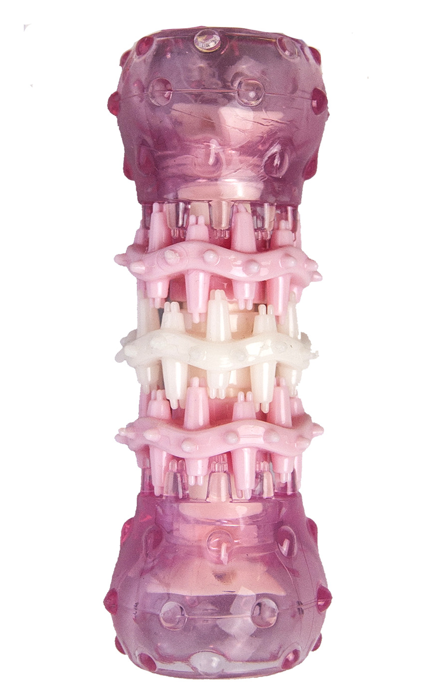 Игрушка для собак Japan Premium Pet трехступенчатая жевательная игрушка для чистки зубов со вкусом копченой курицы, розовая