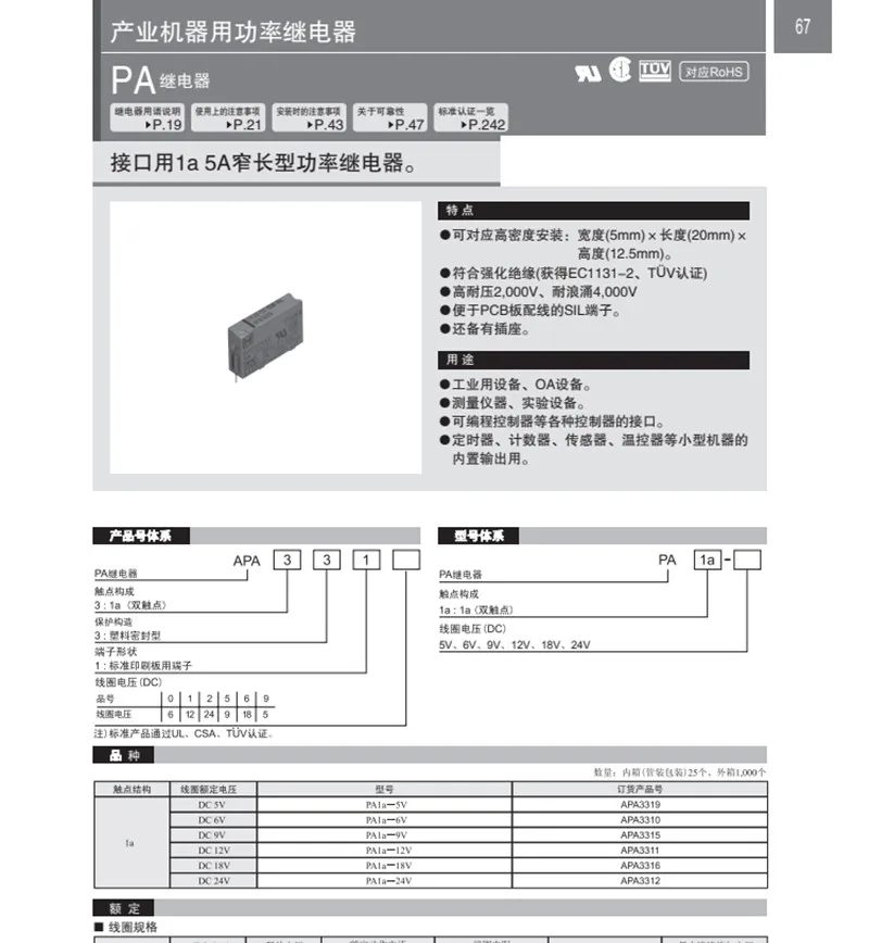 10pcs FREE SHIPPING ORG NEW Relay PA1A-5V APA3319 PA1A-12V APA3311 PA1A-24V APA3312 APAN3105 5V Black APAN3124 APAN3112 24V 12V