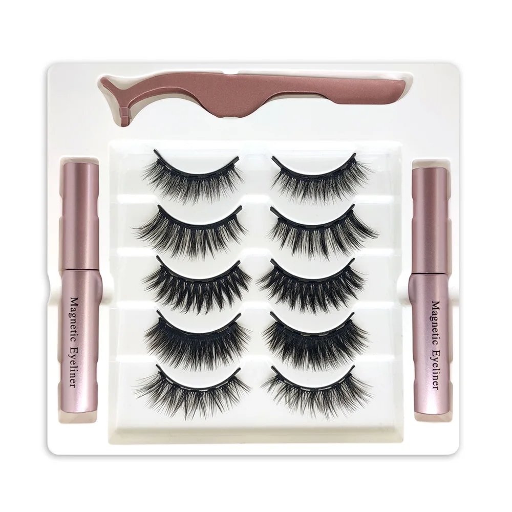 5 пар магнитных ресниц 2 шт. x Магнитная подводка для глаз Пинцет-1 шт.