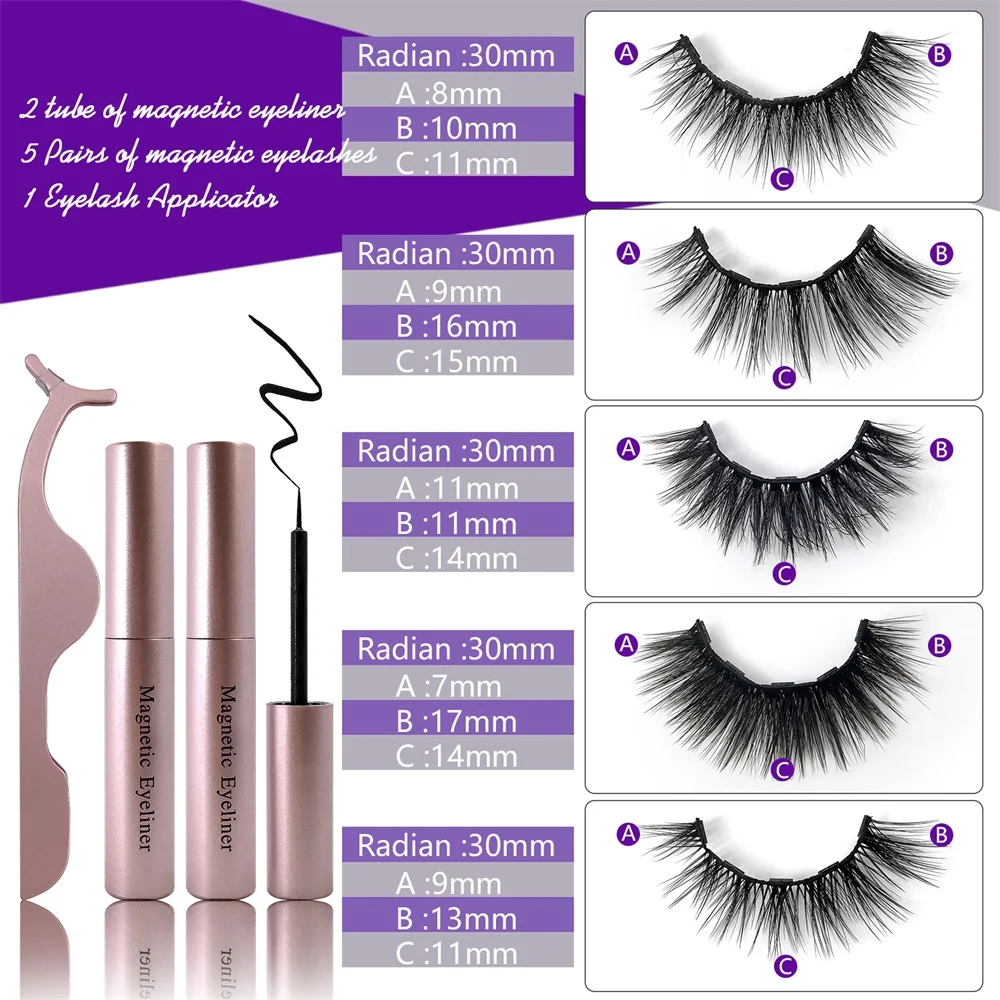 Состояние: абсолютно новый Название продукта: магнитные наборы для подводки для глаз Товар: 5 пар, смешанные стильные магнитные ресницы, 2 шт., магнитная подводка для глаз, 1 шт. пинцет Характеристики: водонепроницаемый, портативный, долговечный, магнитный Не нужно клеить ресницы, удобно и легко ходить. Оставайтесь на месте весь день, легко снимается и перемещается. Как использовать эти магнитные ресницы: Очистите область перед нанесением комплекта Нанесите подводку, как обычно, и дайте высохнуть Просто нанесите магнитные ресницы и наблюдайте, как они легко подключаются к подводке для глаз Настройте по своему вкусу