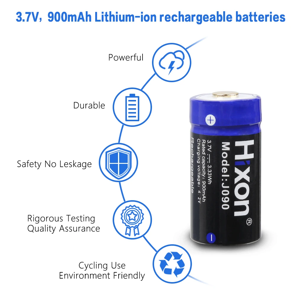 (4) Hixon Li-Ion RCR123A 700 мАч батареи достигают более 3,7 V при полной зарядке. Эти клетки должны использоваться только в высококачественных фонариках CREE светодиодный.
