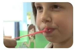 Используется для тренировки мышц вокруг рта в период лиственных зубов От 3 до 5 лет детей; Способствует нормальному развитию челюстей и зубных дуг;