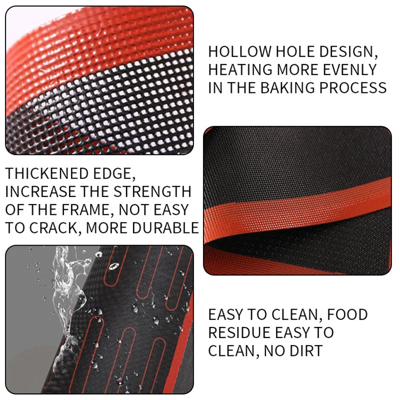 <Хорошая производительность: он предназначен для использования в большинстве печей, этот коврик для выпечки может использоваться с лотками для духовки или печенья для улучшения общего распределения тепла и циркуляции воздуха для равномерного и последовательного результата, без обожженных или поджаренных пятен.