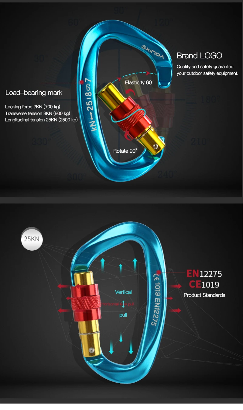 25Kn Профессиональный карабин для скалолазания D форма авиационный алюминиевый защитный замок для альпинизма на открытом воздухе Ascend оборудование для альпинизма
