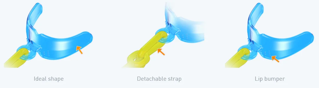 Тренажер для губ фокусируется на повышении силы, растягивании и тонусе мышц губ и щек, одновременно тренируя ласточку пациента. Он прекрасно адаптируется к форме арки пациента, которая эффективно охватывает их пероральную мускулатуру и значительно улучшает традиционную «кнопочную пулю», используемую в миофункциональной терапии.