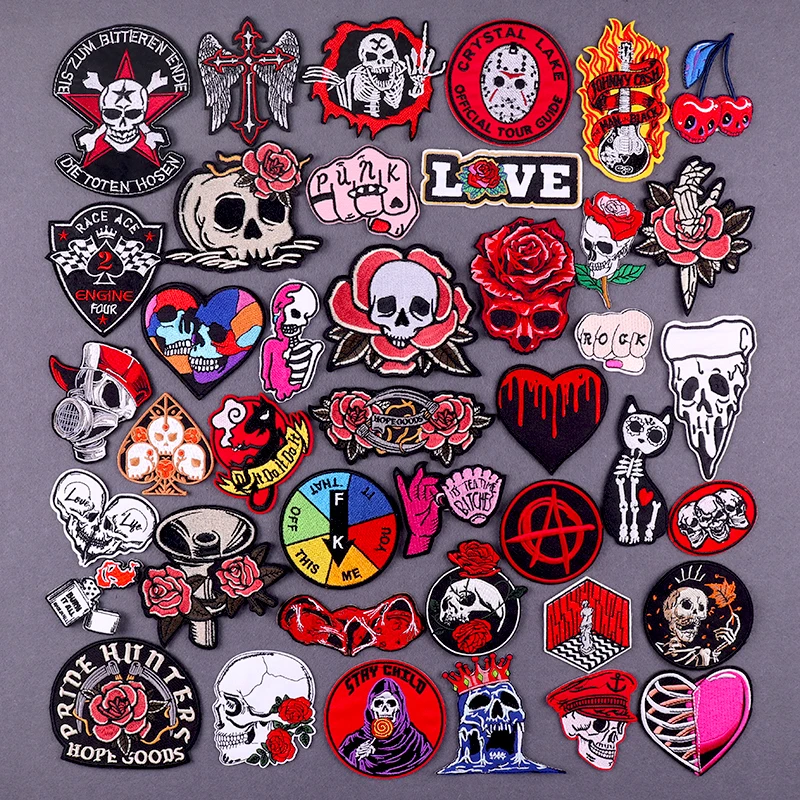 Цветные нашивки с вышитым черепом для одежды, наклейки, Панк заплатка с изображением скелета, железные нашивки на одежде, одежда хиппи, швейный значок