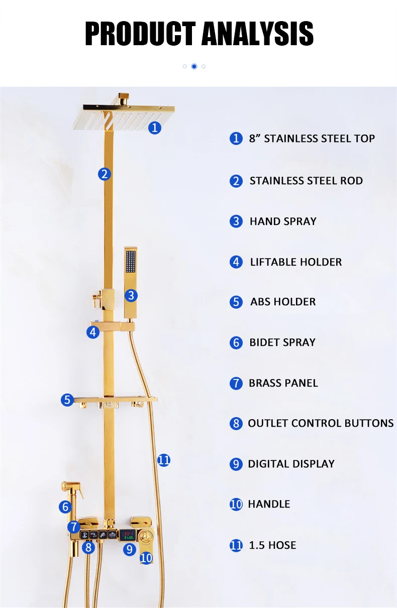 Золотой цифровой смеситель для душа, набор, ванная комната, горячий и холодный смеситель, термостатическая система для Дождевого душа, настенное крепление, спа, ванна, кран Torneiras