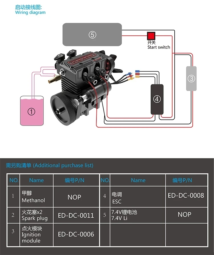 . Метод использования продукта: используйте метанол топливо (20%-25% нитрометан готовое топливо), и нужно соответствовать три в одном запуска ESC, тепловой головки, батареи, топливного бака, нефтяных труб, И т. д. для запуска двигателя.