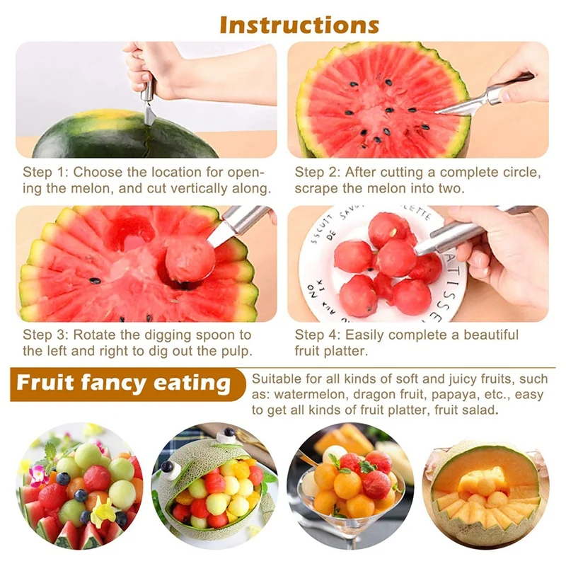 [Набор декоративных инструментов для пластин] Вы получите 2 шт. декоративных ложек разного размера и двухголовый баллон для дыни, идеальный инструмент для покрытия, И хорошо отображает вашу еду для фотографий, размещенных в социальных сетях.