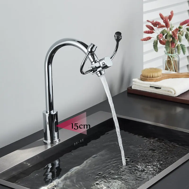 Сенсорный кран для раковины с датчиком, индуктивный Электрический кран для мытья глаз, только смеситель для холодной воды, кран с аккумулятором, хромированный кран для ванной комнаты