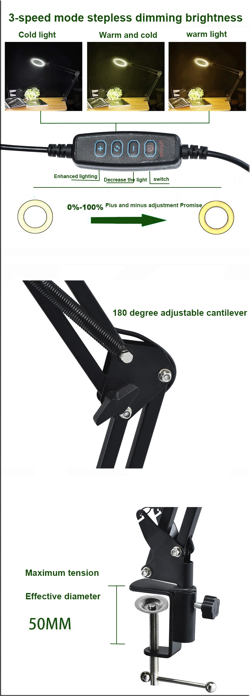 2,1 дюйма ширина зажима делает его может использоваться эффективно и растягивающийся трубки позволяют увеличить площадь освещения и регулировать светильник позиции по мере необходимости.