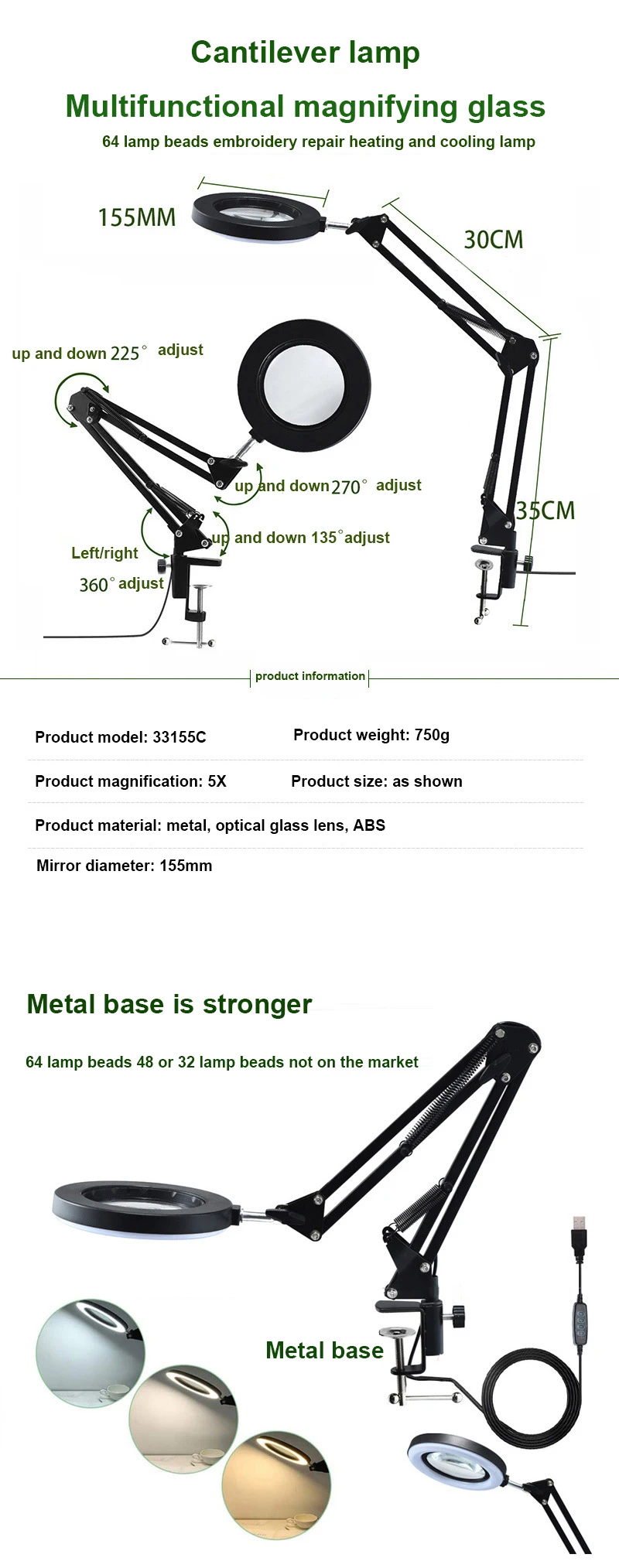 Этот 2-в-1 Настольная Лупа специально предназначена для печати, машинное оборудование, резьба, работы в саду или других ремонтных работ. С высокими яркими светодиодными лампами 5X увеличительные линзы для вашего разнообразного использования. Чего вы ждете? Просто приходите и покупайте.