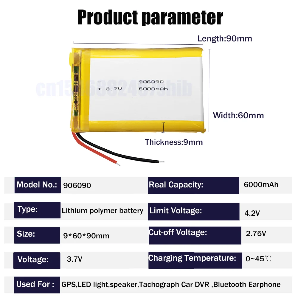 При заказе 1-10 штук 3,7 в 6000 мАч 906090 литий-полимерный перезарядка Li-Po Батарея для GPS трекер Мощность банк планшетный цифровой Камера светодиодный потолочный светильник