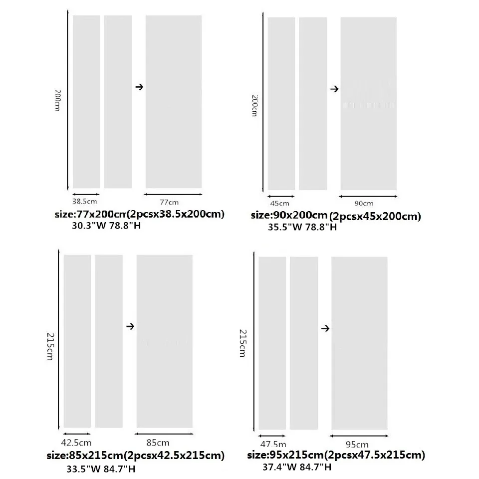 Size D: 95cm*215cm/37.40inch*84.65inch(1set=2pcs*47.5cm*215cm)