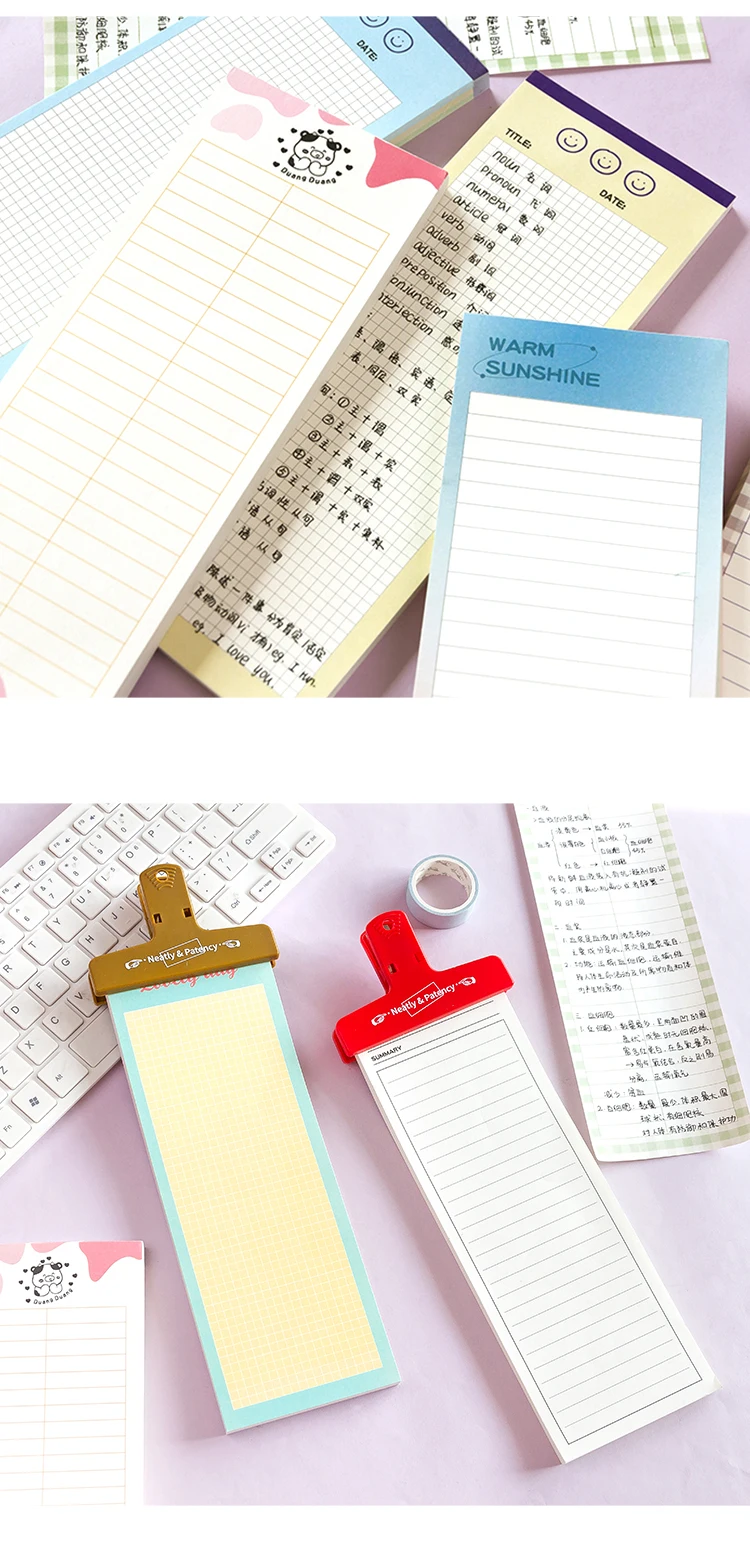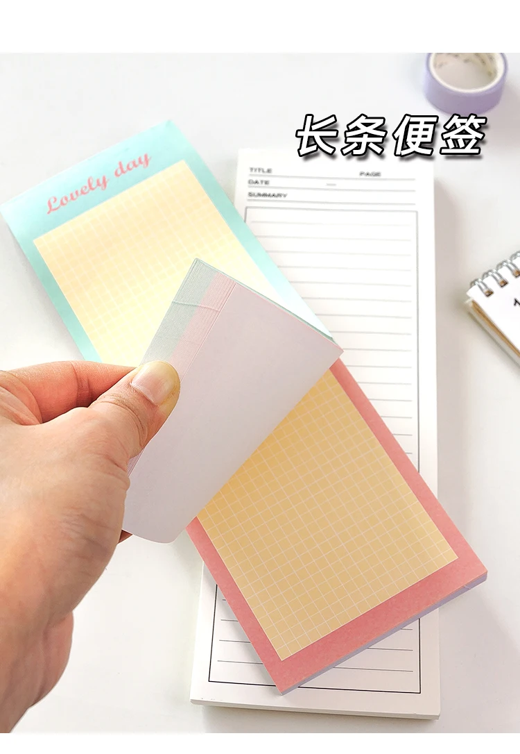 90PCS Simple Long Note Paper Diary Notebook Loose-Leaf Memo Pad Student Tearable Message Note Memo Notebook School Stationery