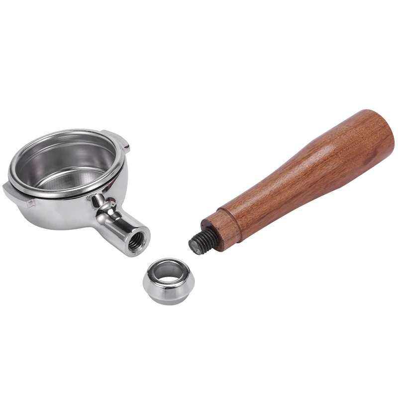 2X 58Mm Stainless Steel Coffee Machine E61 No Base Filter Bracket Coffee Bottomless Handle Coffee Spoon Wooden Handle