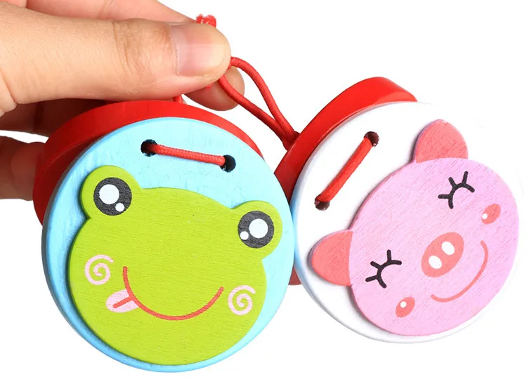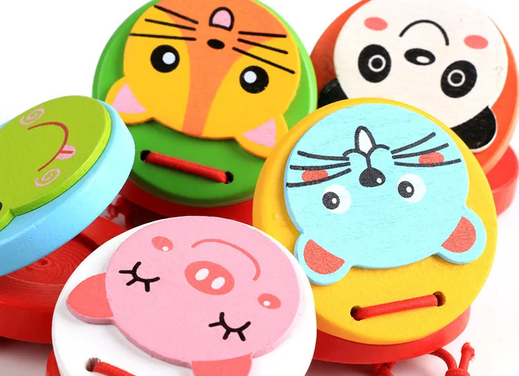 1 шт. детские деревянные кастанеты, развивающие игрушки для детей, музыкальный ударный инструмент, игрушки для малышей, Мультяшные животные, милые подарки