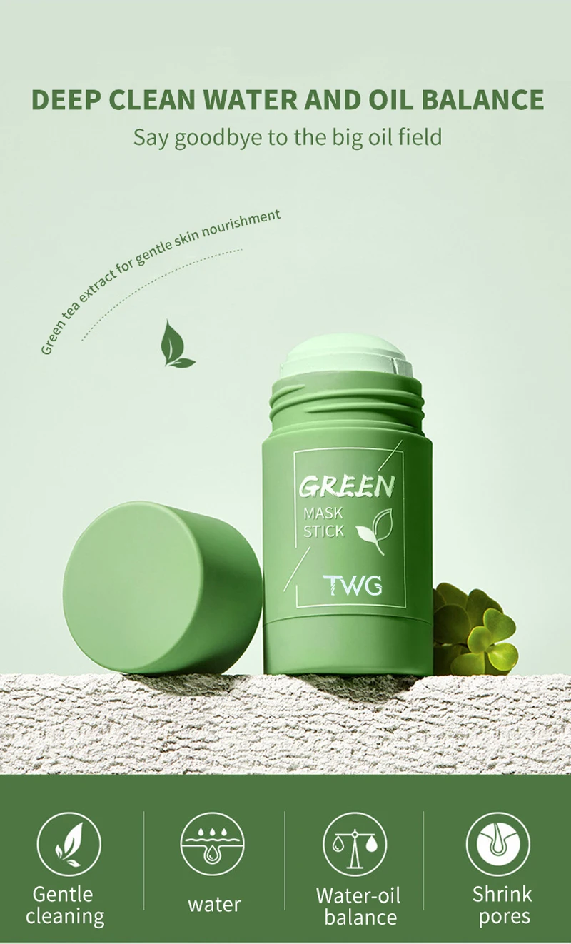 Cleansing Green Stick Green Tea Mask Purifying Clay Stick Mask Oil Control Anti-Acne Eggplant Whitening Skin Care Face Mask
