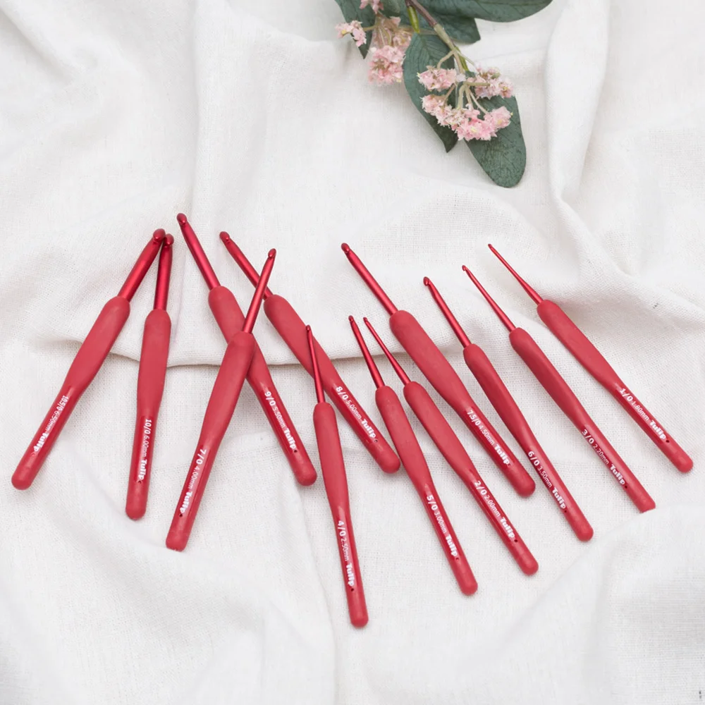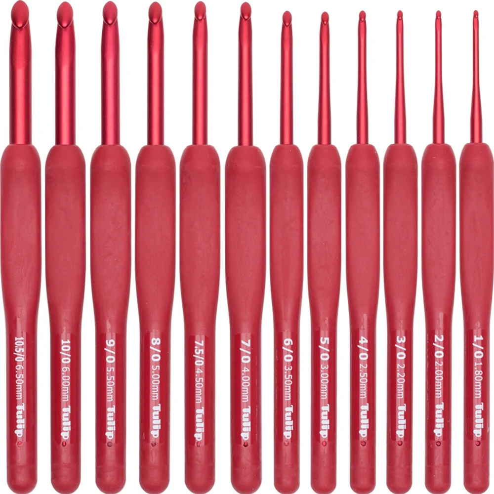1PCS Japan Tulip Brand Red Crochet Hook Aluminum Resin Knitting Needles tool Original authentic Upscale Imported Japan 1.8-6.5mm