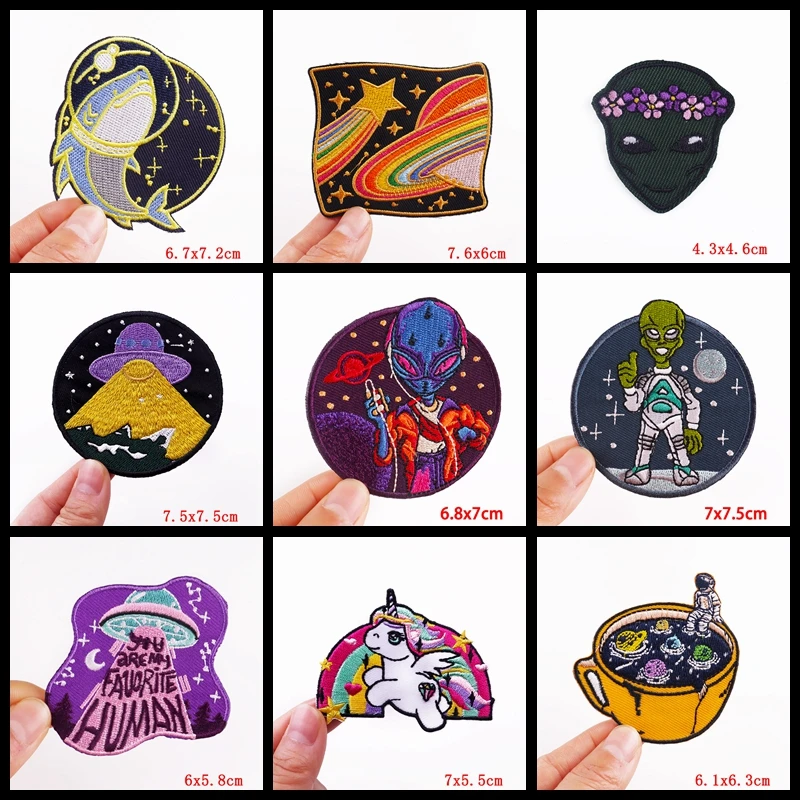 Космический астронавт значки Alien UFO железо на вышитые патчи для одежды термоклейкие пластыри Мультяшные патчи на одежду DIY
