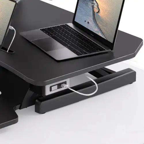Не нужно нажимать вручную, просто одна клавиша позволяет легко регулировать высоту. Конструкция настольного конвертера с одним касанием облегчает регулировку высоты от сидения до стоя за считанные секунды без ручного нажатия. Регулируемая высота составляет 15-50 см. Электрический стол поднимается и опускается по прямой линии, что экономит пространство и более стабильно, чем ручная пружина подъема газа.