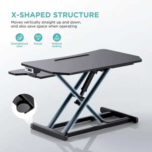 X-shaped lift rod design может гарантировать вертикальное и дрейфовое поднятие, которое может эффективно сэкономить место и обеспечить плавное поднятие. Прочная стальная рама позволяет этому компьютерному столу поддерживать до 20 кг для верхней рабочей поверхности и 2 кг для лотка для клавиатуры.