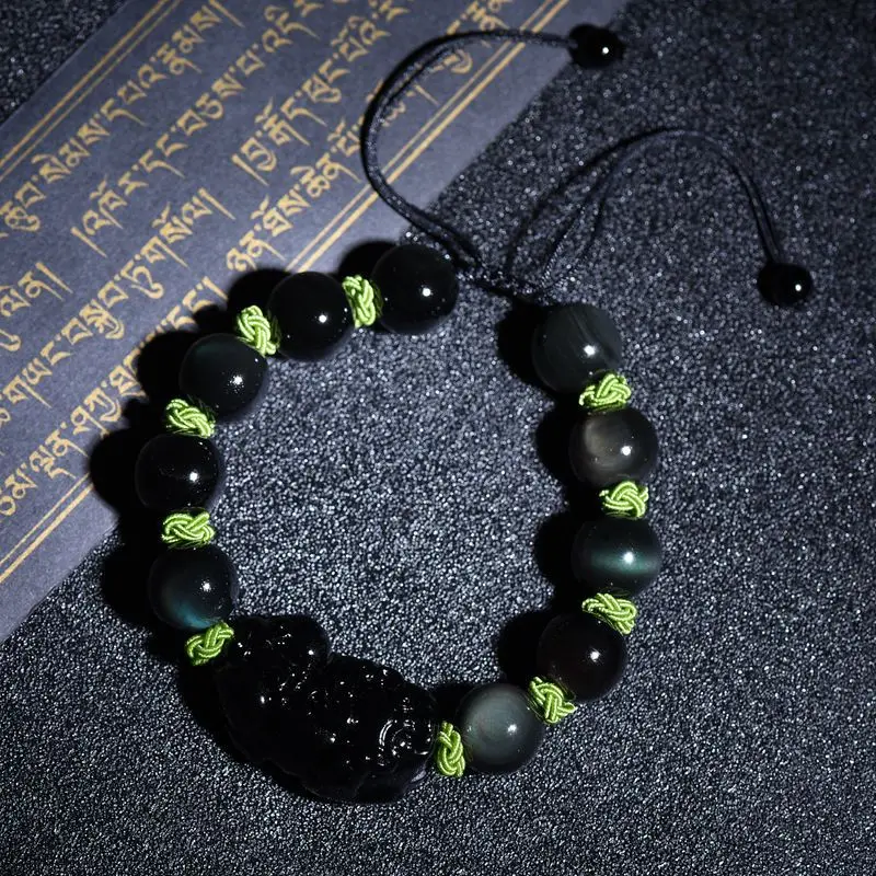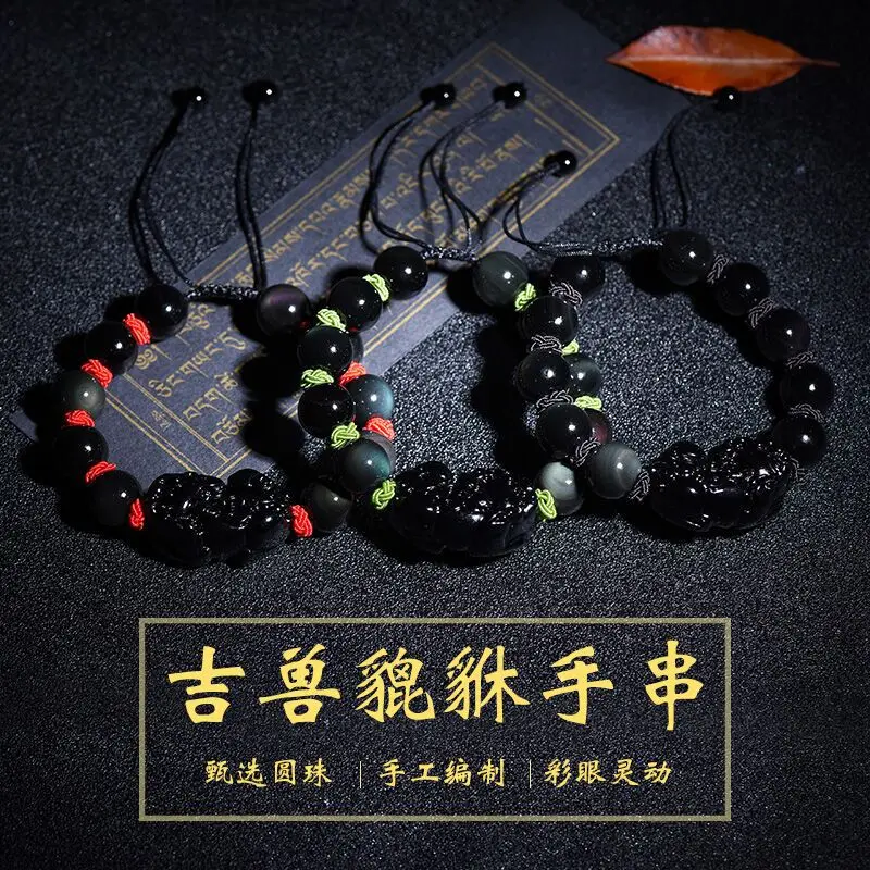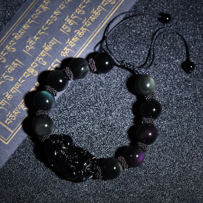 Натуральный Радужный обсидиановый глаз PiXiu браслет ручной работы Braide Brave trips черный камень бисерный браслет браслеты DIY Прямая поставка Jewelr