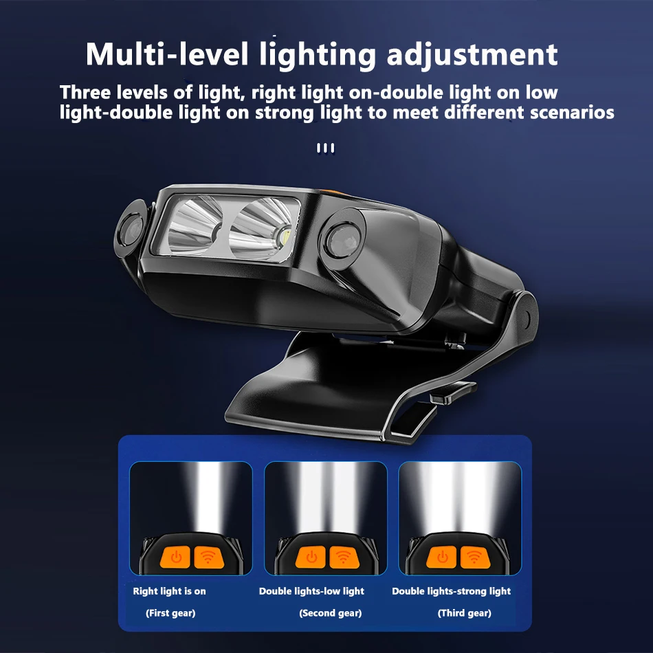 Мини-светильник на голову, открытый светильник с зажимом, умный датчик, водонепроницаемый, для езды на велосипеде, для ночного рыбалки, флэш-светильник, портативный головной светильник, светильник