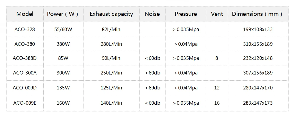 4) Конструкция смазки без масла, сжатый воздух очищается.