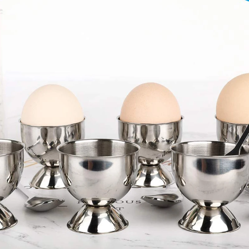 Набор стаканчиков для яиц из нержавеющей стали для твердых мягких вареных яиц с 6 держателями для яиц, 6 ложек для яиц, чашки для яиц для завтрака