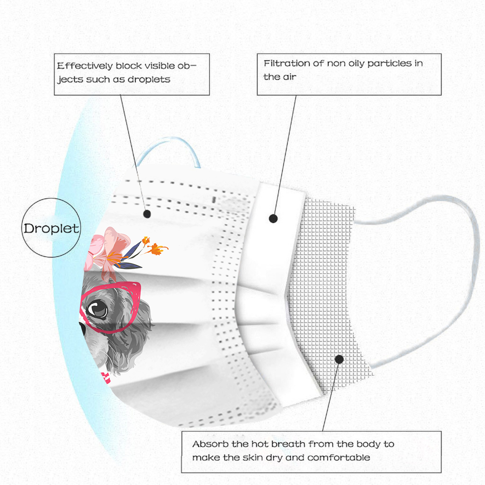 3 слоя ткани одноразовые маски, Это И безопасно для использования. Дышащий материал и милые узоры, которые Делает его полезным и модным. СпециальныйТканьДизайн, обеспечивает некоторые Защита от автомобильных выхлопных газов, пыльцы и т. д. эластичная петля для ушей, Легко носить и не давит на уши. Маникюрный салон или любые другие области, где Может потребоваться защита