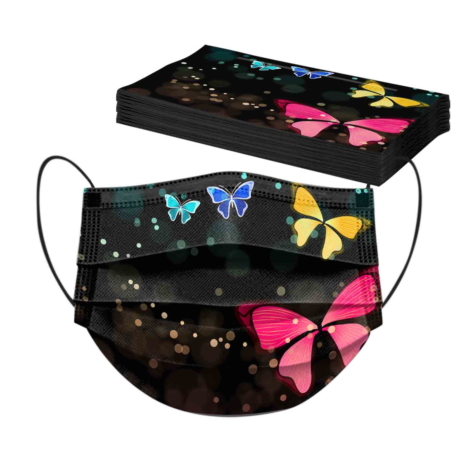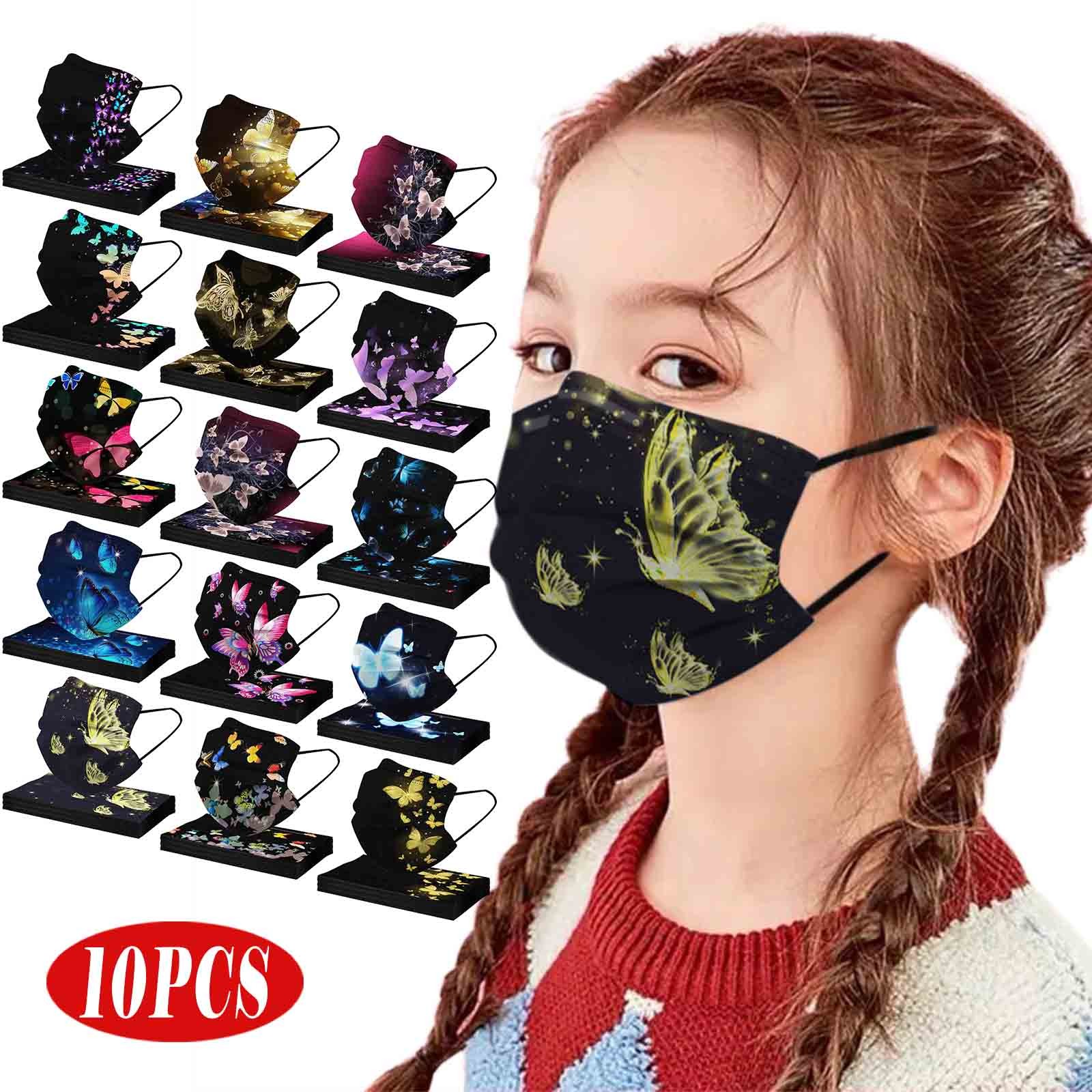 10 шт., детские одноразовые маски для лица с разноцветными рисунками бабочек, 3 слоя