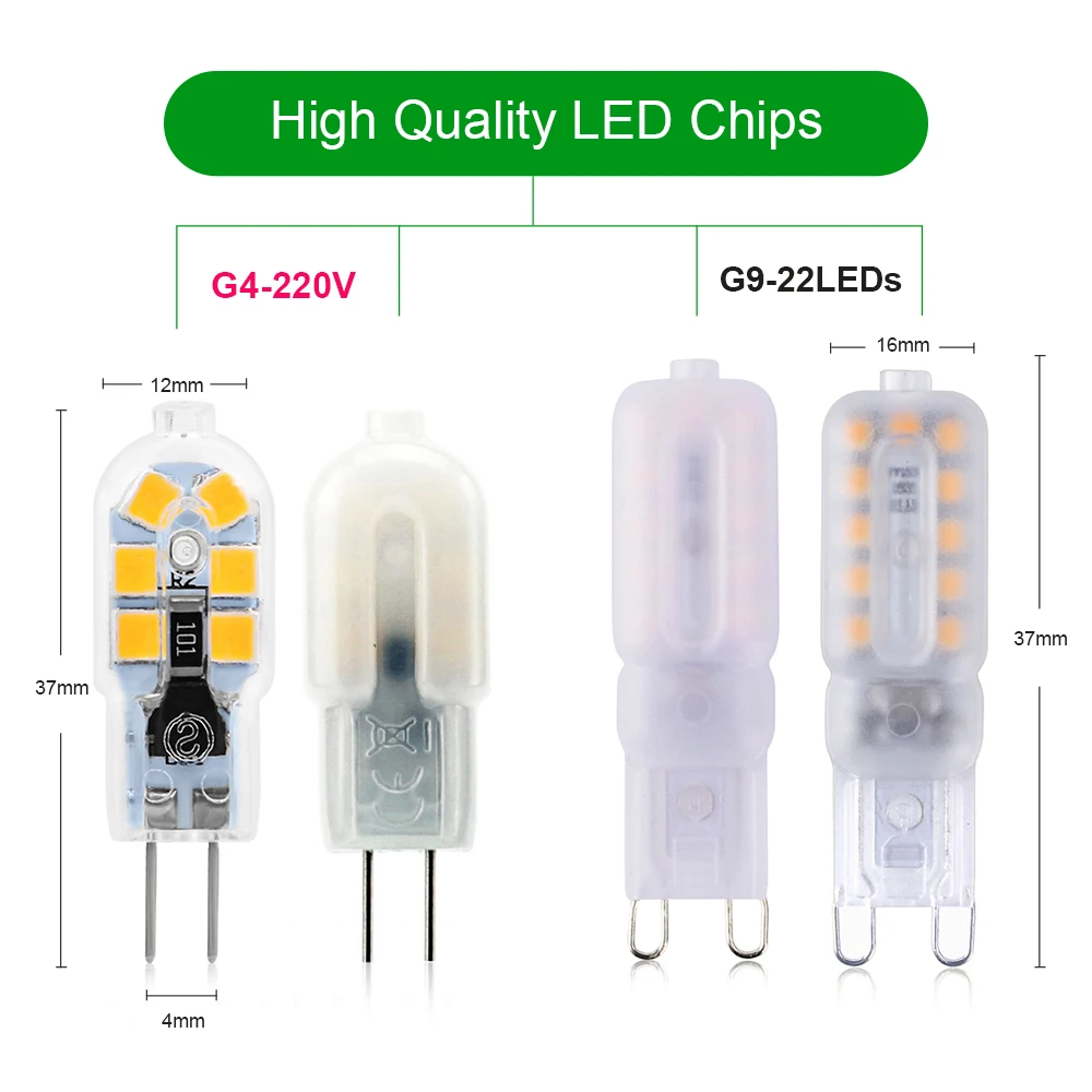 Два вида напряжения на выбор:AC/DC12VИлиAC220-240V, Идеальная замена G4/G9 галогенная лампа непосредственно.