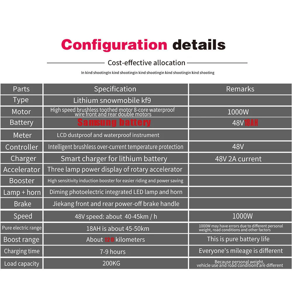 Чистый Электрический диапазон:18AH составляет около 45-50 км, 1000 Вт может иметь ошибки из-за различного личного веса, дорожных условий и других факторов