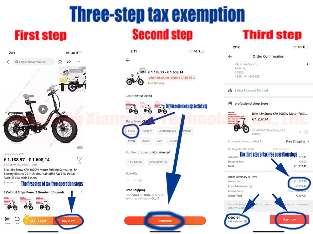 1: выберите Китай как место доставки, без уплаты НДС («налог», который запрашивается при оплате заказа)